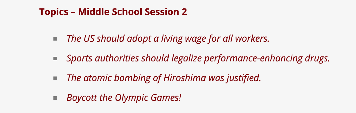 TODAY is the last day of Middle School Debate Session 2!